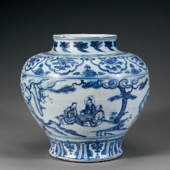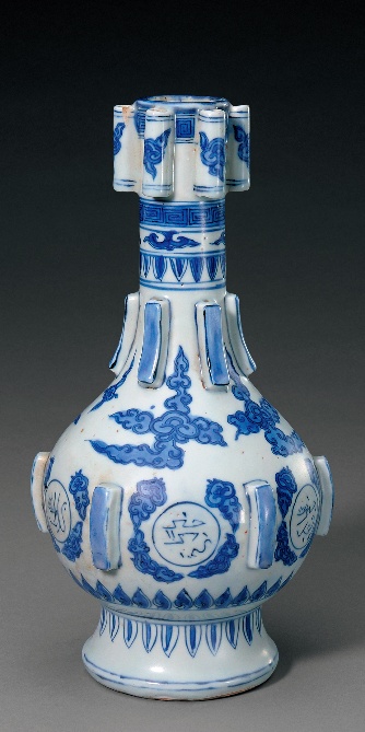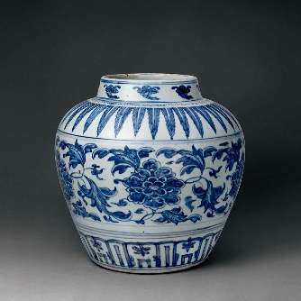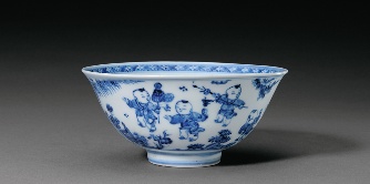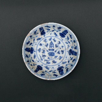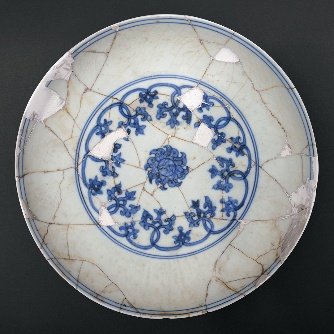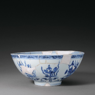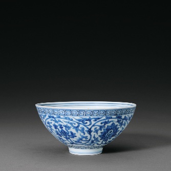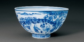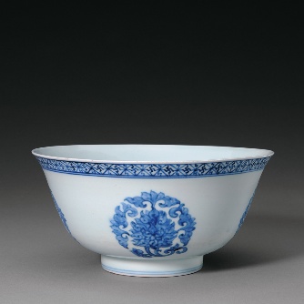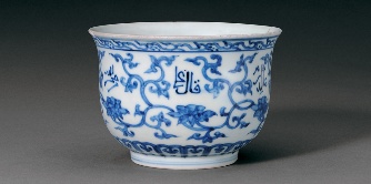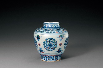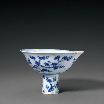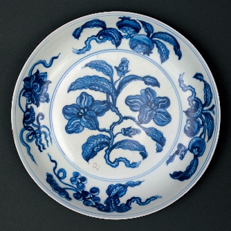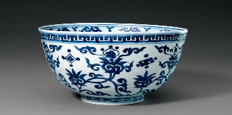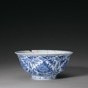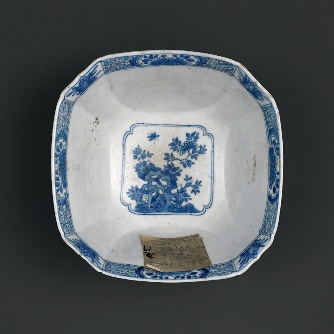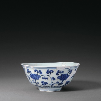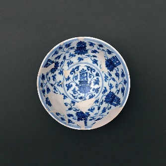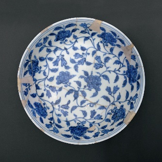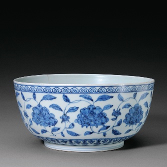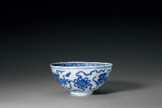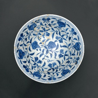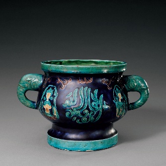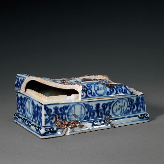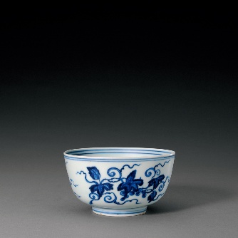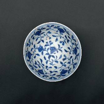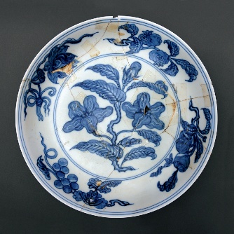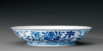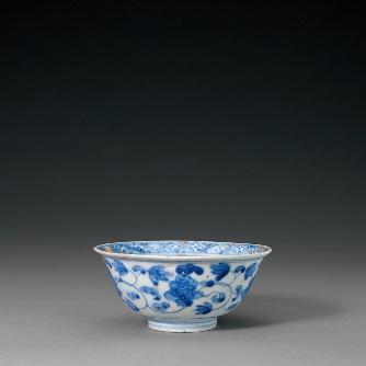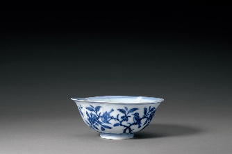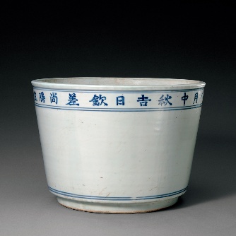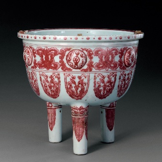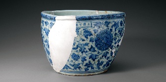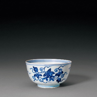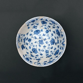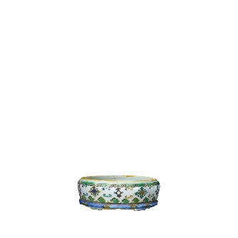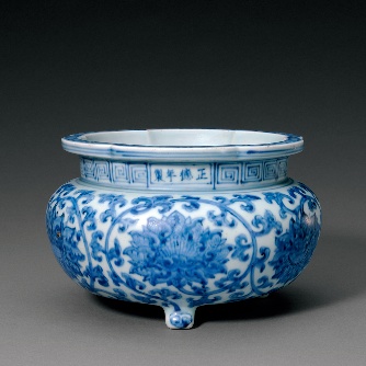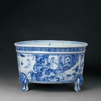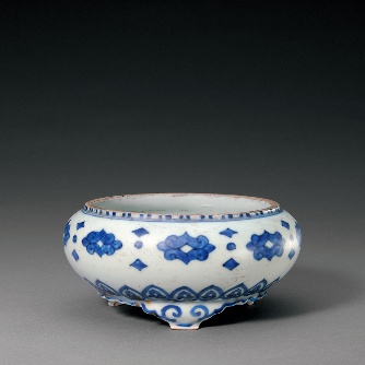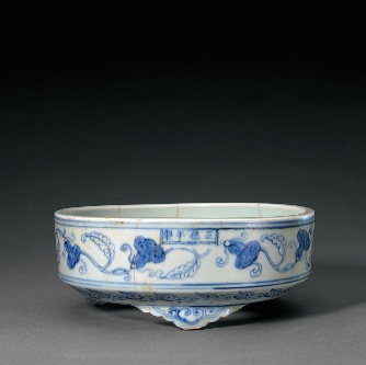 淡描青花缠枝牵牛花纹三足盆(斗彩半成品)