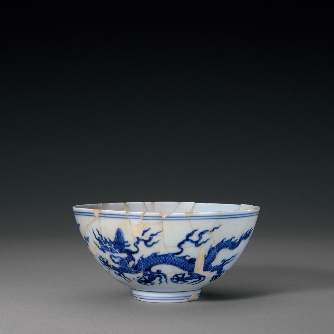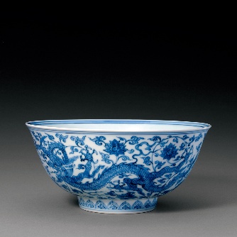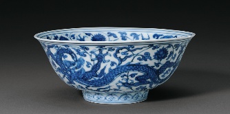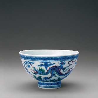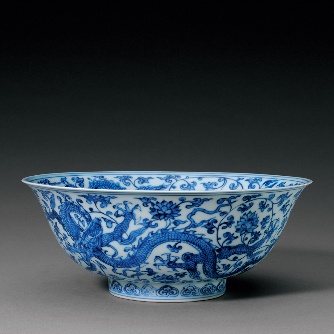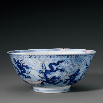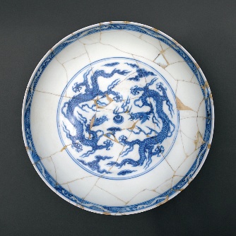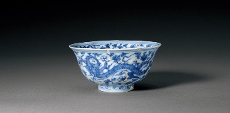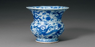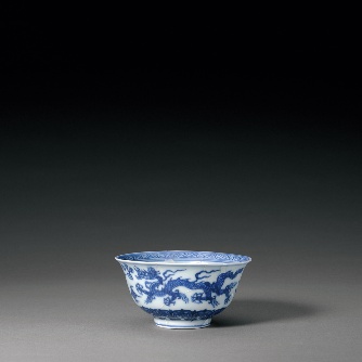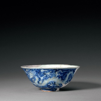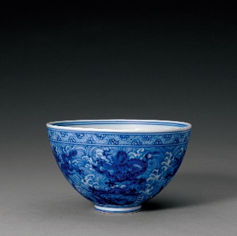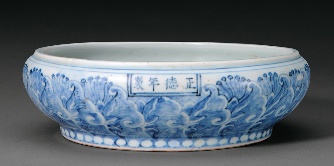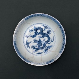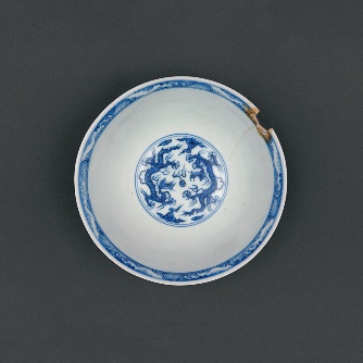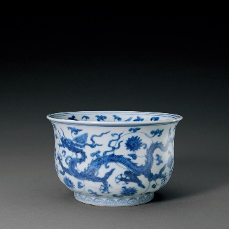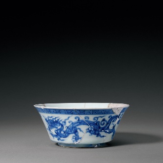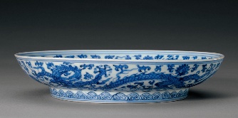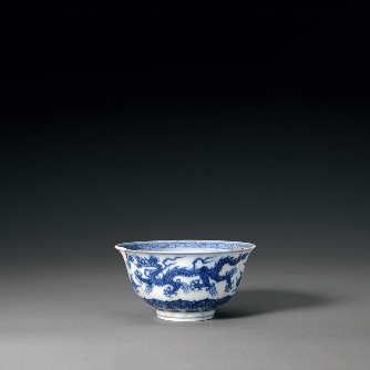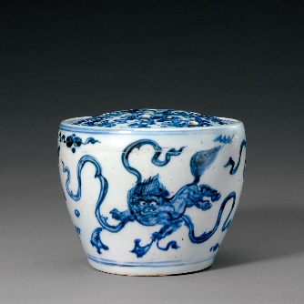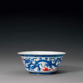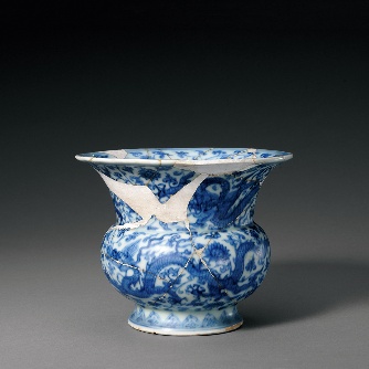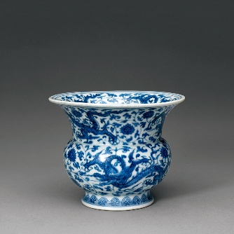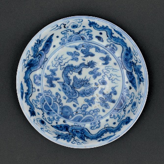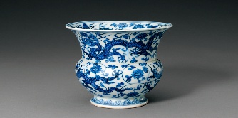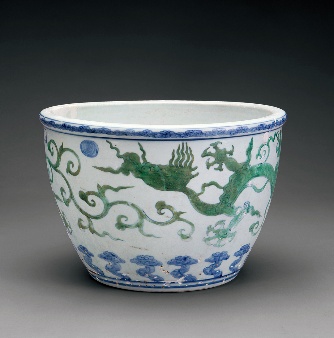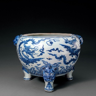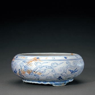 淡描青花龙纹三足敛口盆(斗彩半成品)