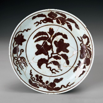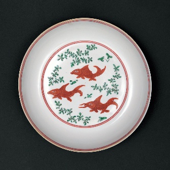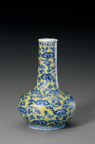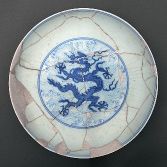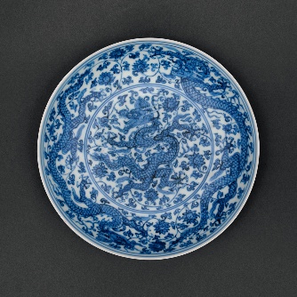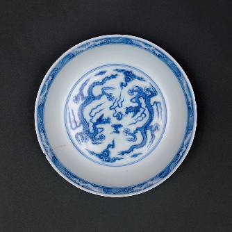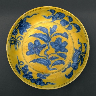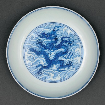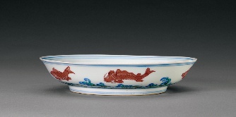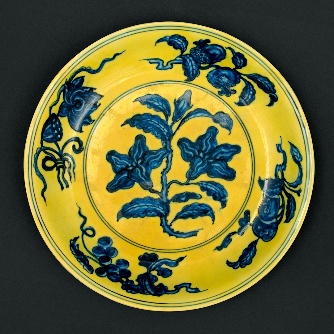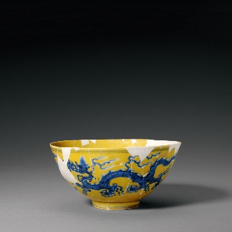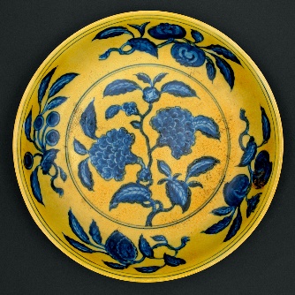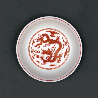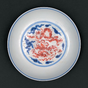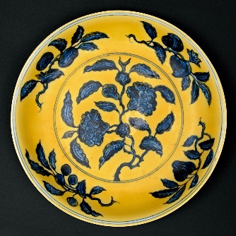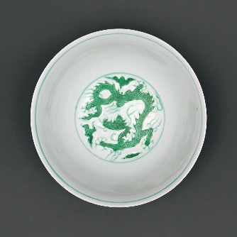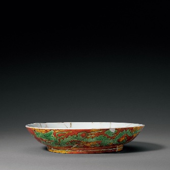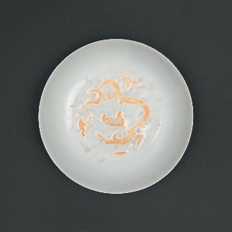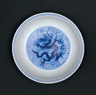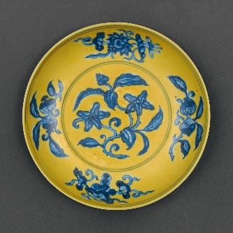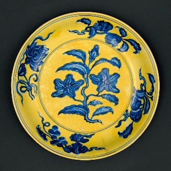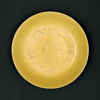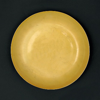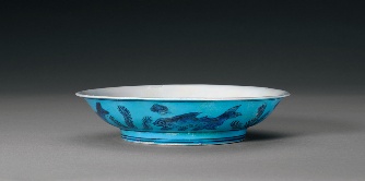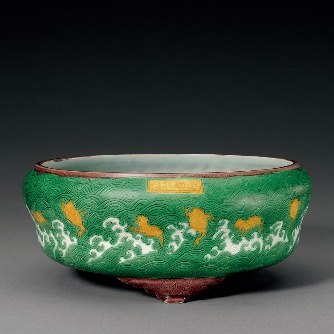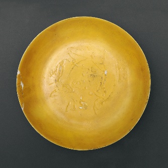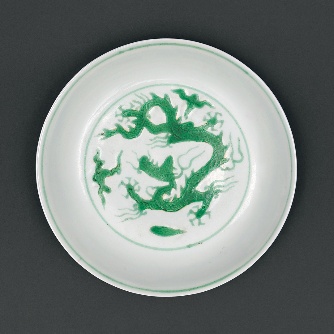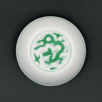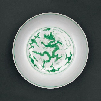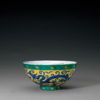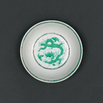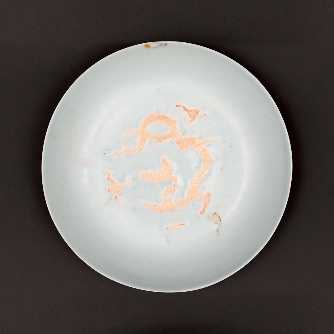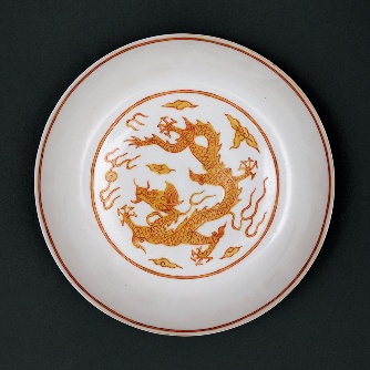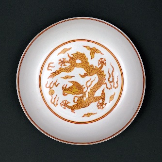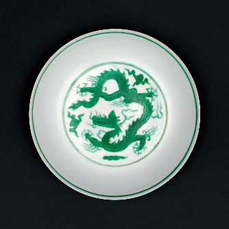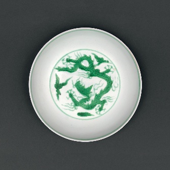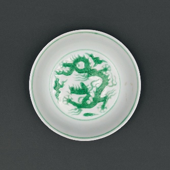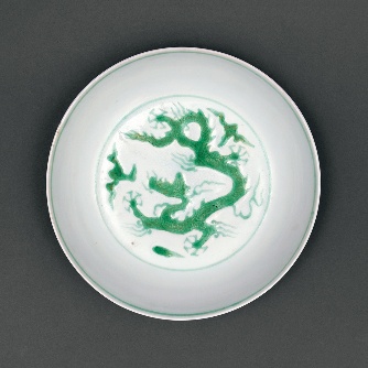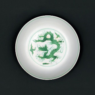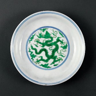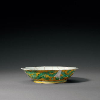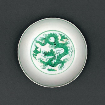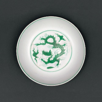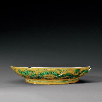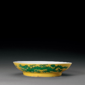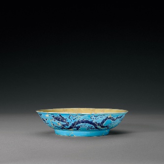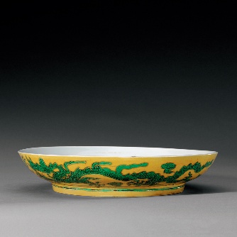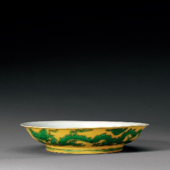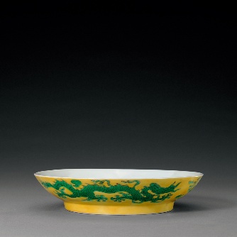 里黄釉外孔雀绿地洒蓝锥拱云龙纹盘