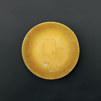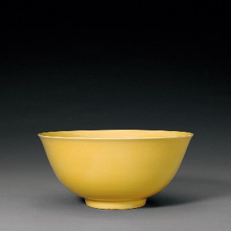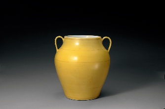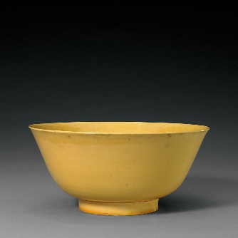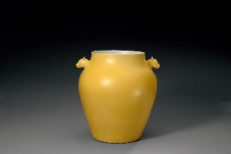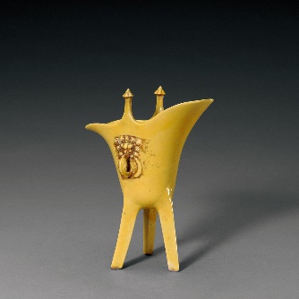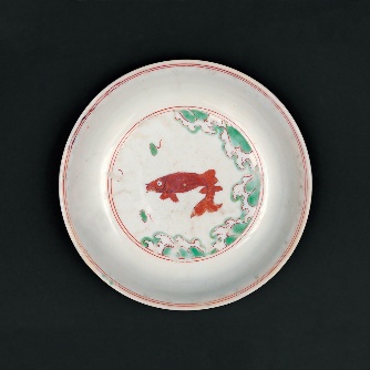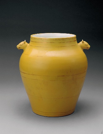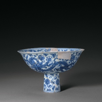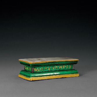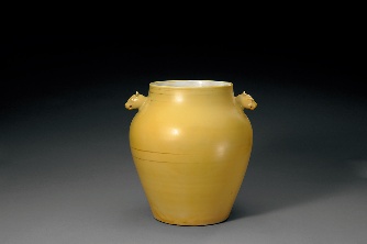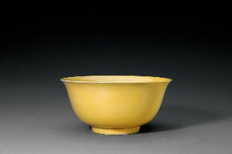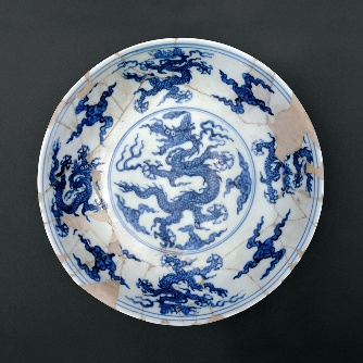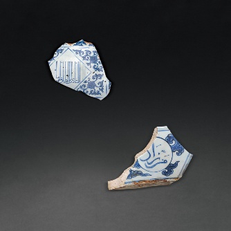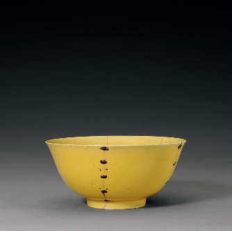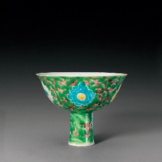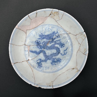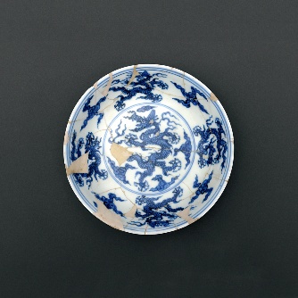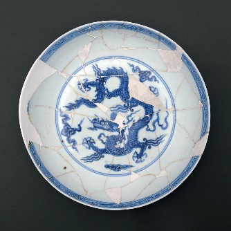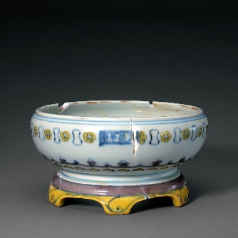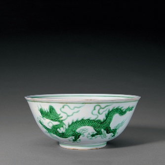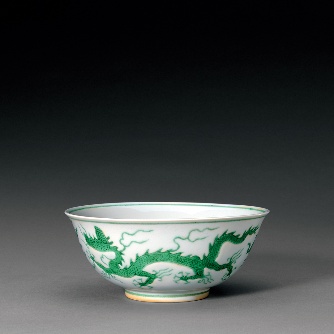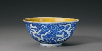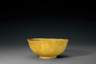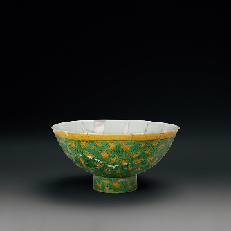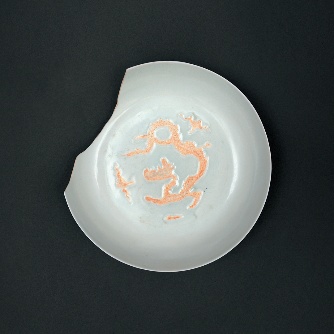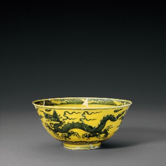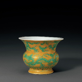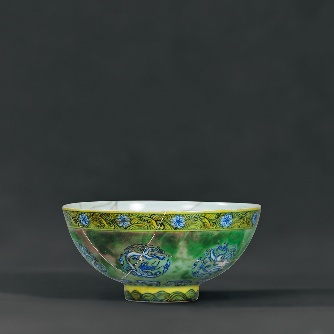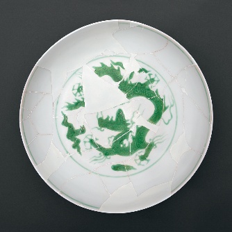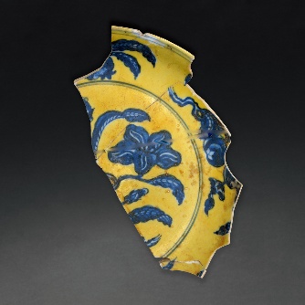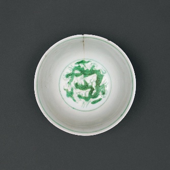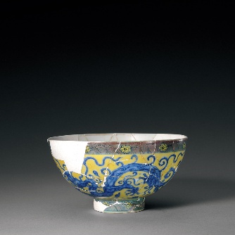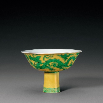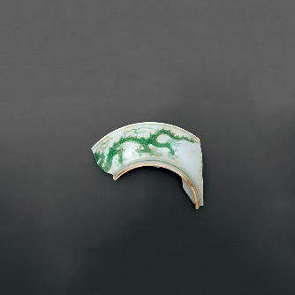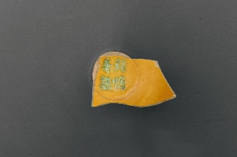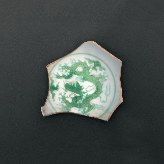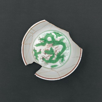 黄地绿彩锥拱二龙戏珠纹高足碗(残片)