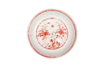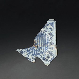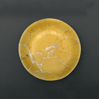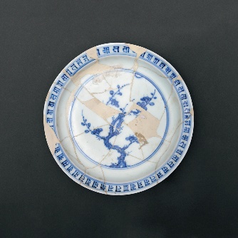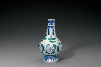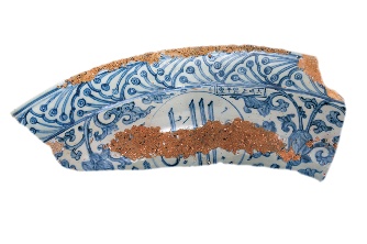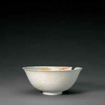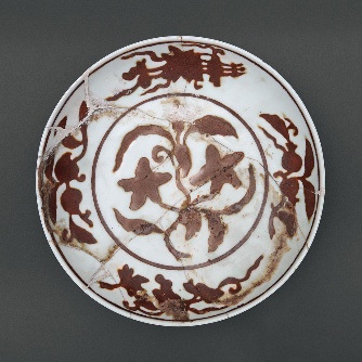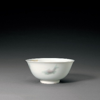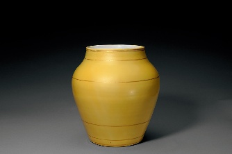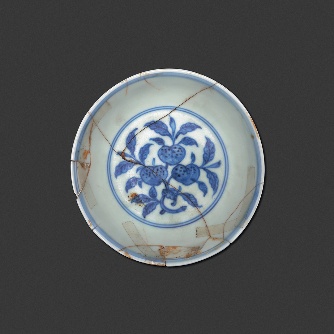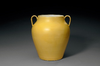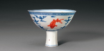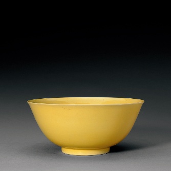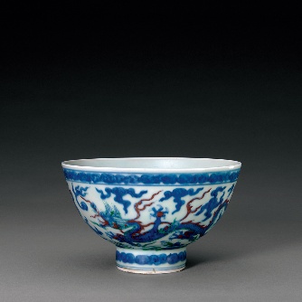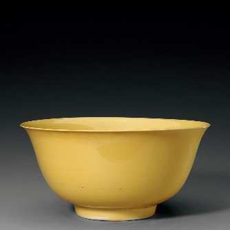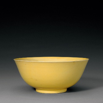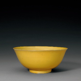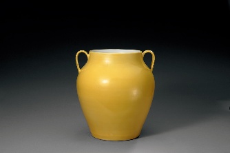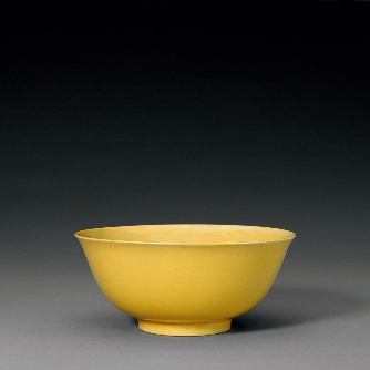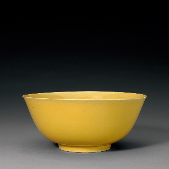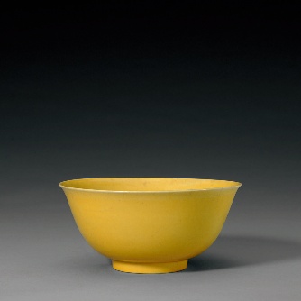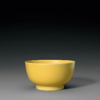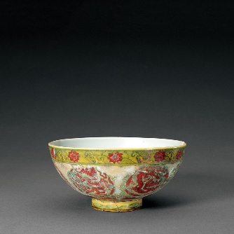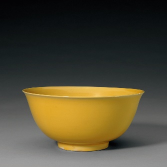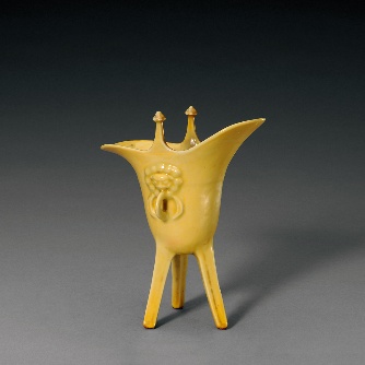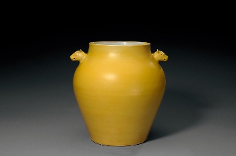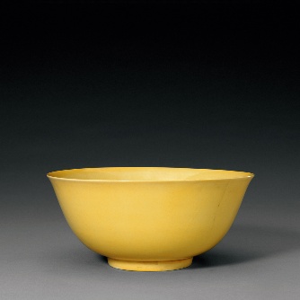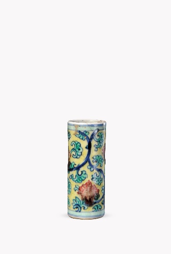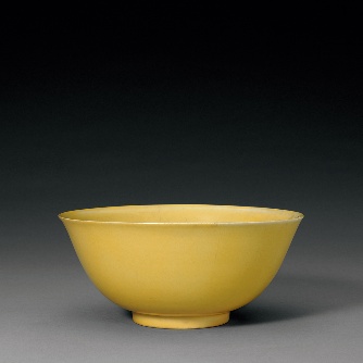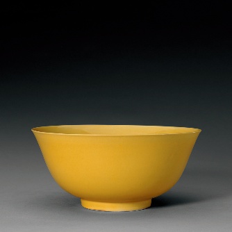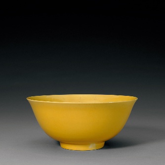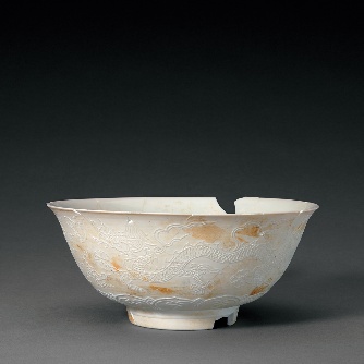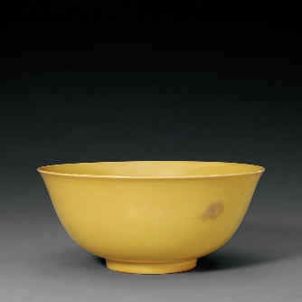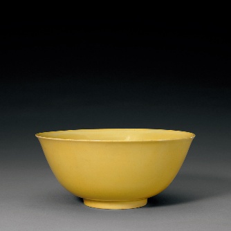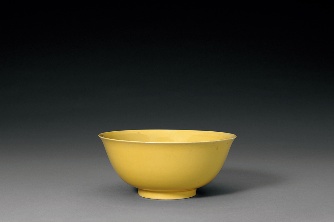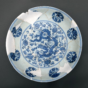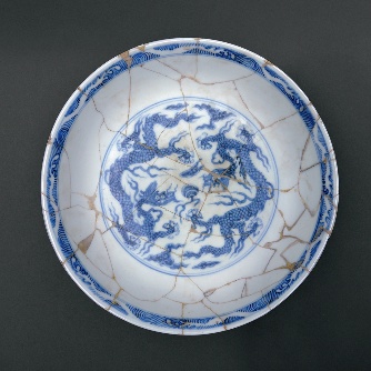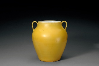 黄地绿彩锥拱二龙戏珠纹高足碗(残片)