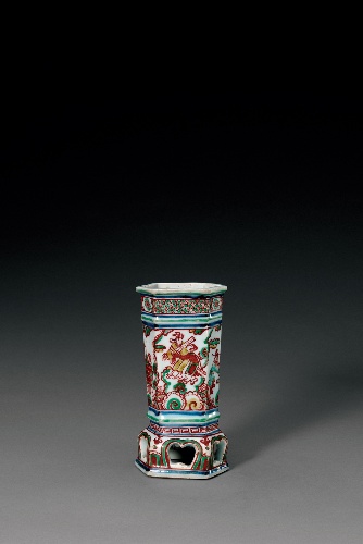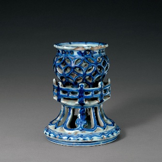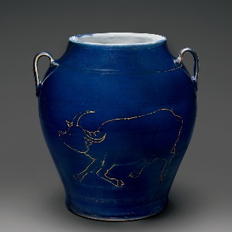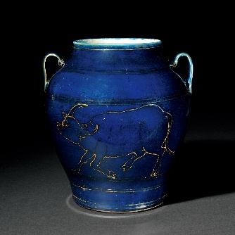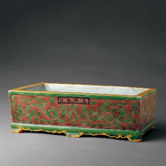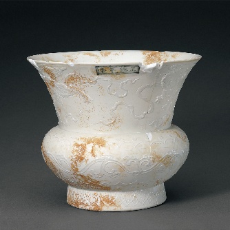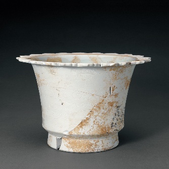 涩胎堆雕狮子戏球纹渣斗式花盆