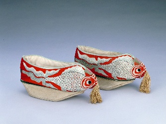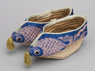 缎绣金鱼纹元宝底女棉鞋
