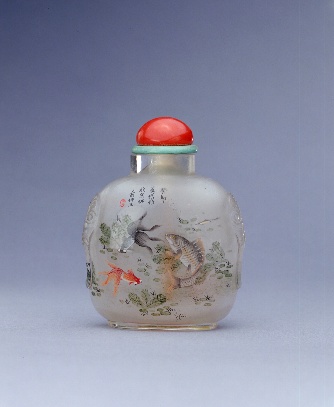 玻璃内画金鱼水藻图鼻烟壶
