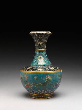 掐丝珐琅金鱼水藻莲花图瓶